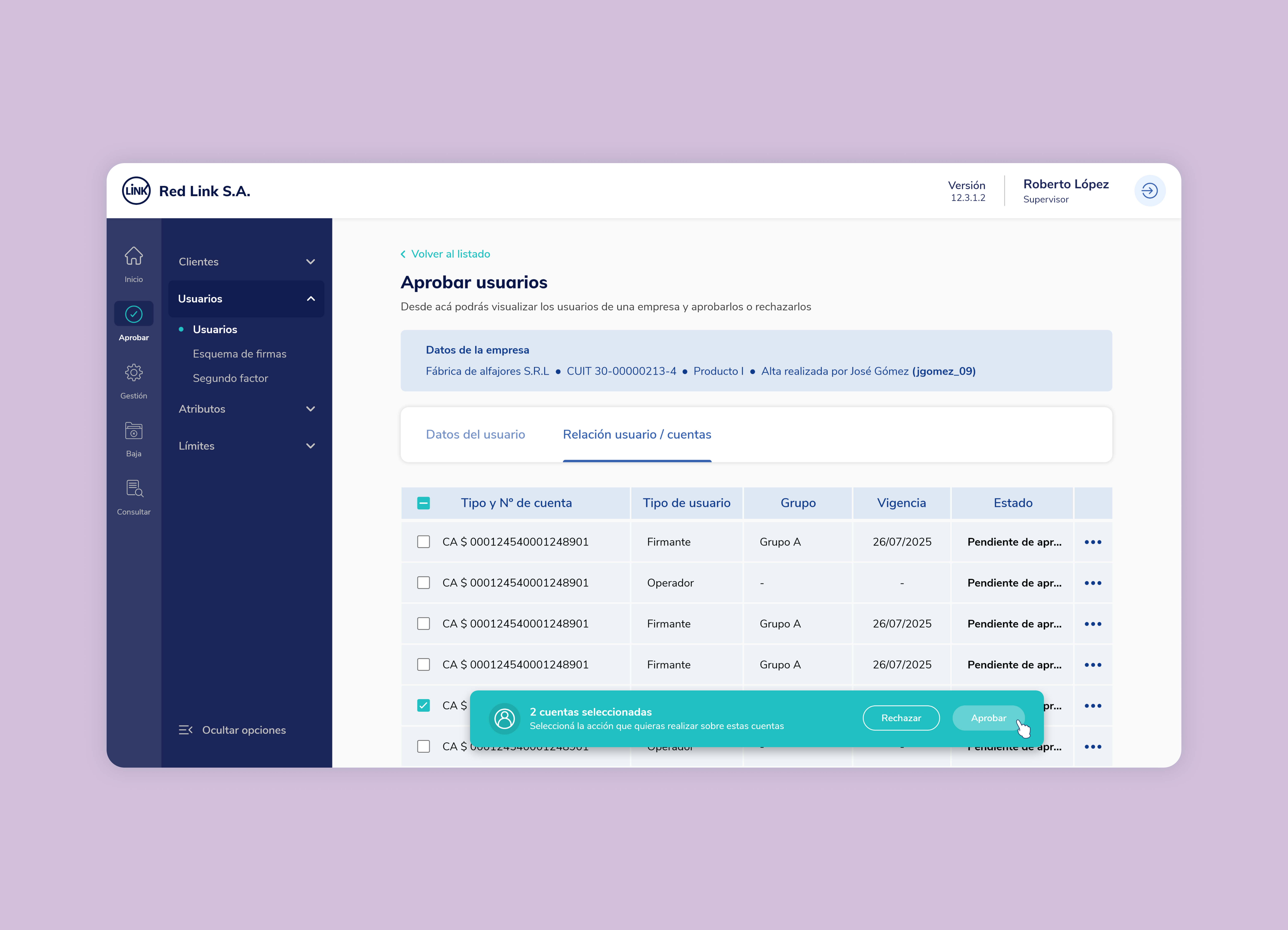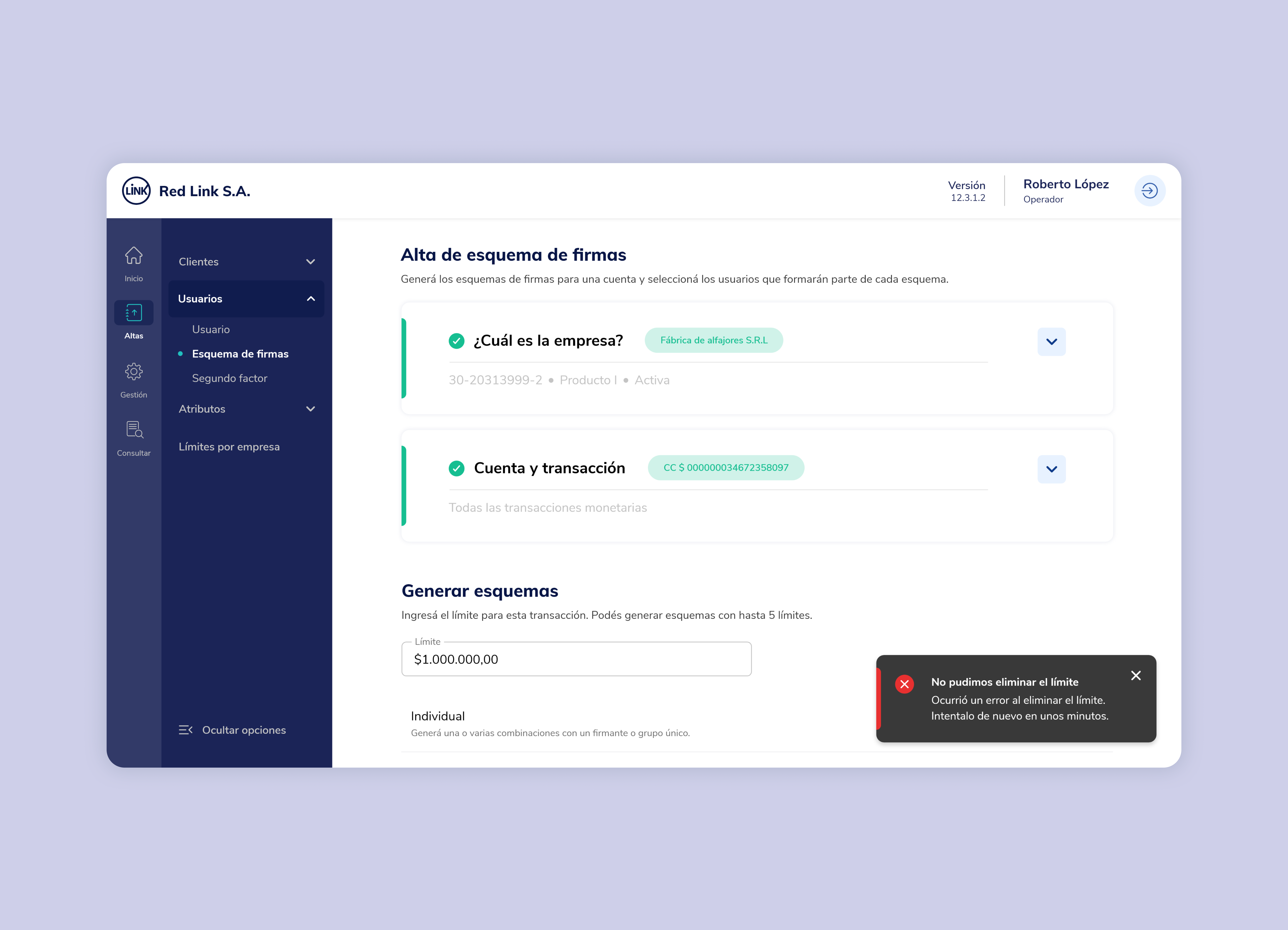 Rediseño completo del backoffice de gestión de los bancos para la Banca Empresas de Red Link.