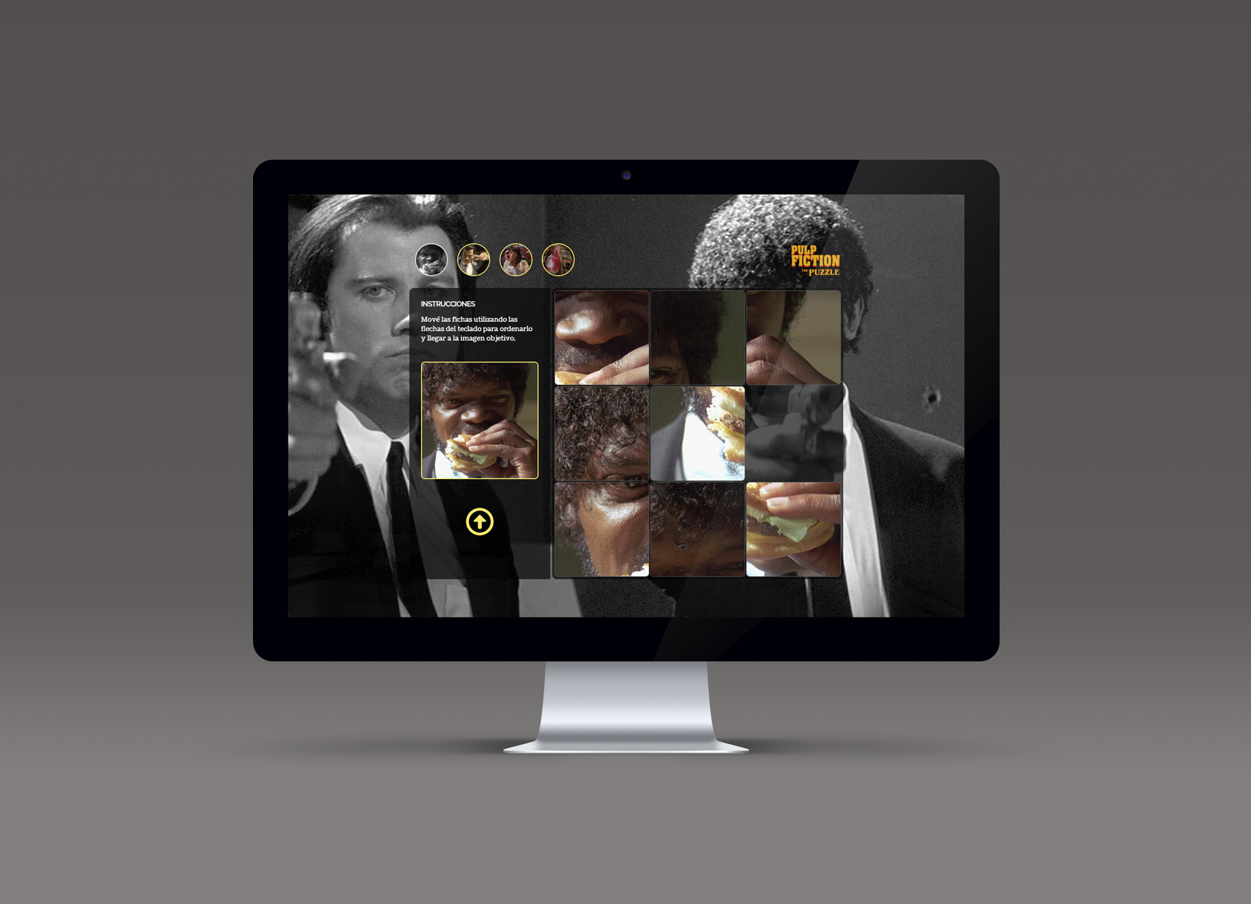 Diseño y desarrollo experimental de un juego de rompecabezas con temática de la película Pulp Fiction. El proyecto se concibió como un juego con contenido multimedia, como la pantalla de bienvenida, y un fondo con transiciones durante el juego.